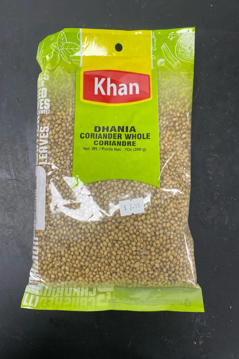 Enhance curries, soups, and chutneys with Khan Dhania Coriander Whole. Perfect for Indian, Mexican, and Middle Eastern dishes.