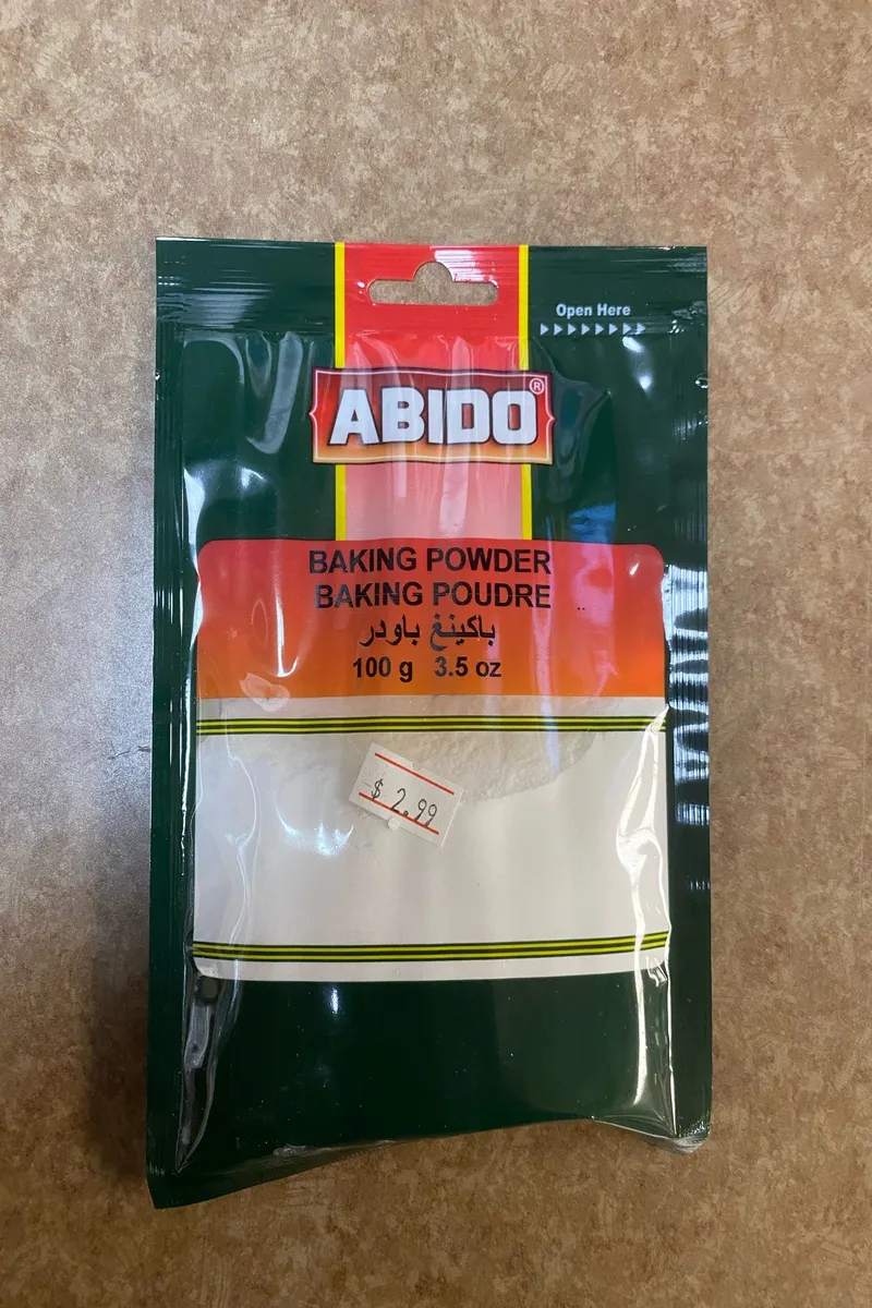 [Specialty] Abido Baking Powder 100g Enhance your baking with Abido Baking Powder 100g, a halal-certified leavening agent perfect for fluffy cakes and pastries. Ideal for Middle Eastern and global cuisines, it ensures consistent, delightful results every time.